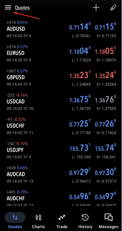 1.打开 手机 MetaTrader 5(MT5)应用程序。