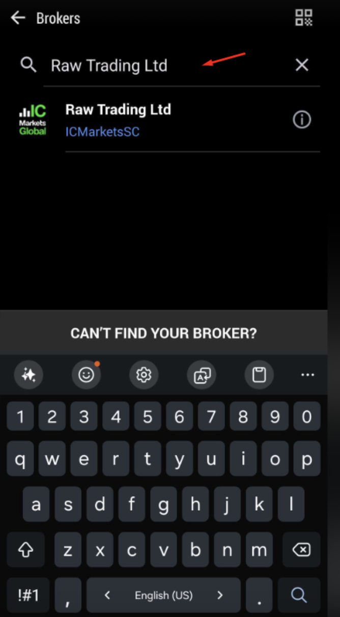4.在底部搜索栏【查找您的经纪商】中,重新输入:Raw Trading Ltd。