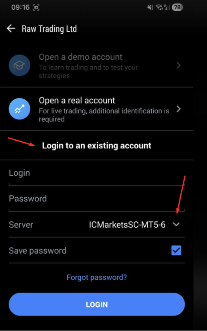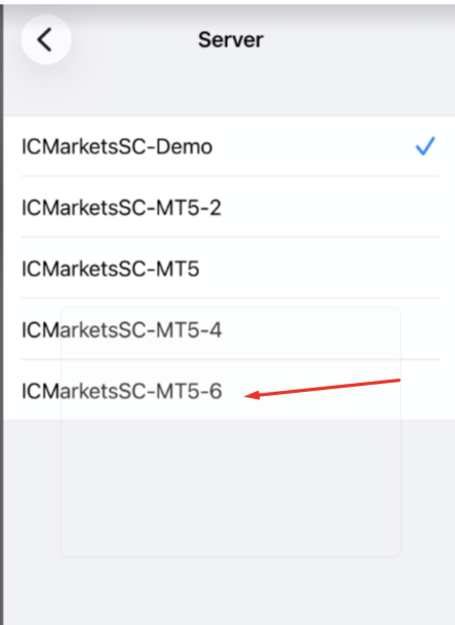 7.选择正确的服务器 ICMarketsSC-MT5-6。