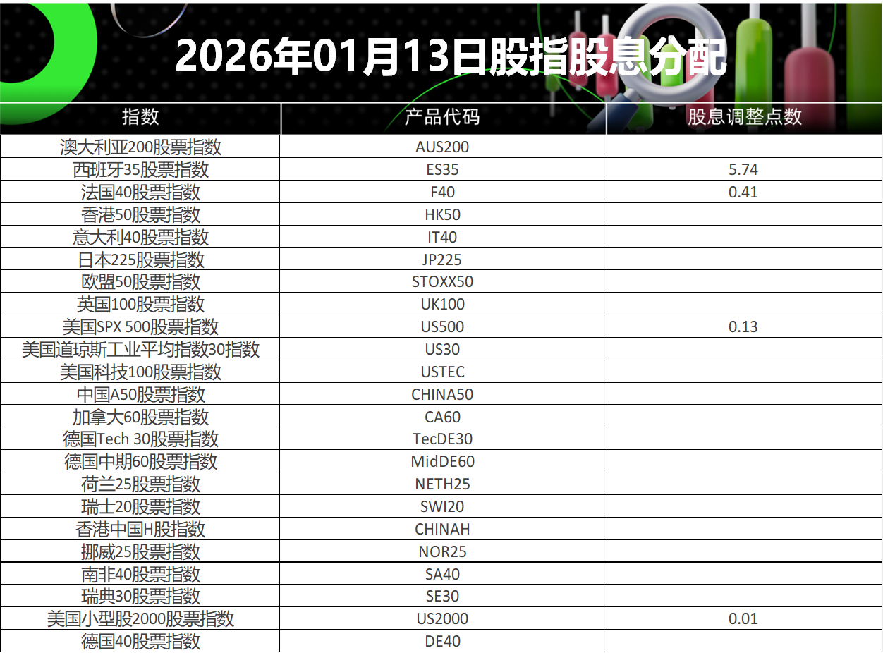 13 Jan 2026 2026年01月股指股息分配表 (2026-01-13) Rachel Yu No Comments 亲爱的客户您好, 请查阅我们更新的2026年01月13日股指股息分配表。 以下所有时间均为平台时间(GMT+2) IC Markets Global 中文团队 中文官网: http://icm-cn-asia.com Email: support.cn@icmarkets-cs.com 微博:@IC小帮手