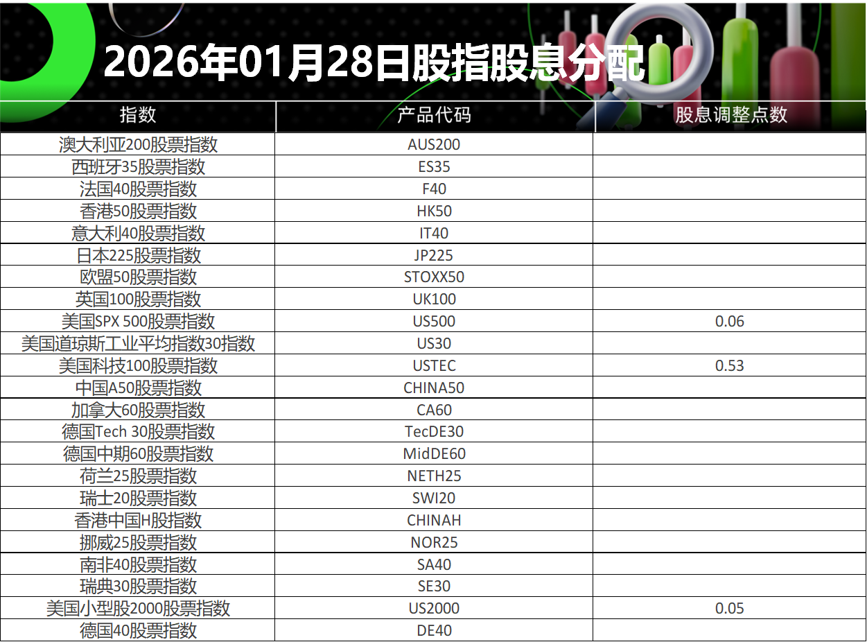 28 Jan 2026 2026年01月股指股息分配表 (2026-01-28) Rachel Yu No Comments 亲爱的客户您好, 请查阅我们更新的2026年01月28日股指股息分配表。 以下所有时间均为平台时间(GMT+2) IC Markets Global 中文团队 中文官网: http://icm-cn-asia.com Email: support.cn@icmarkets-cs.com 微博:@IC小帮手