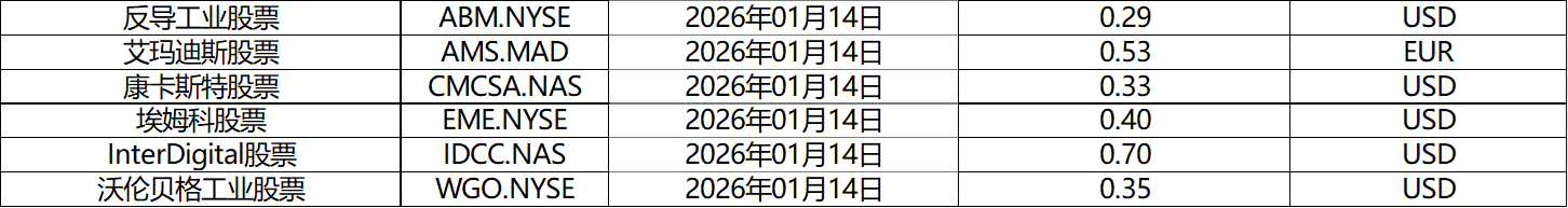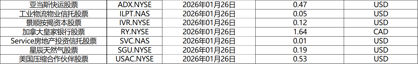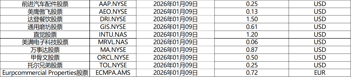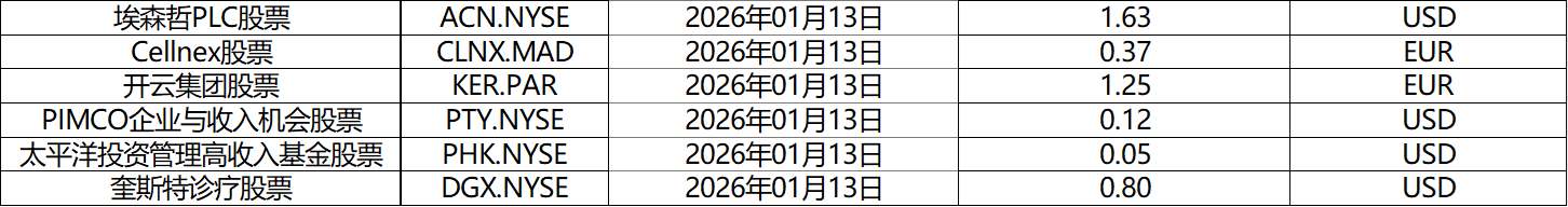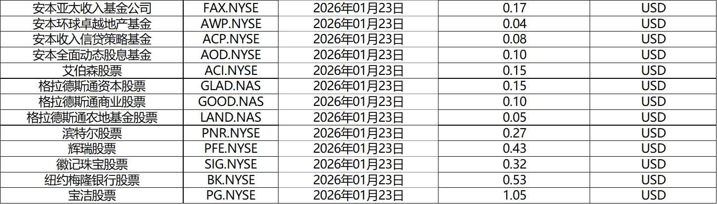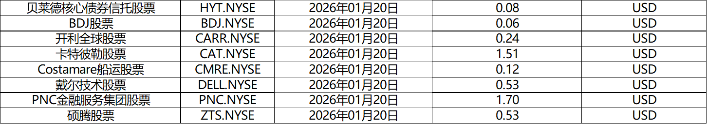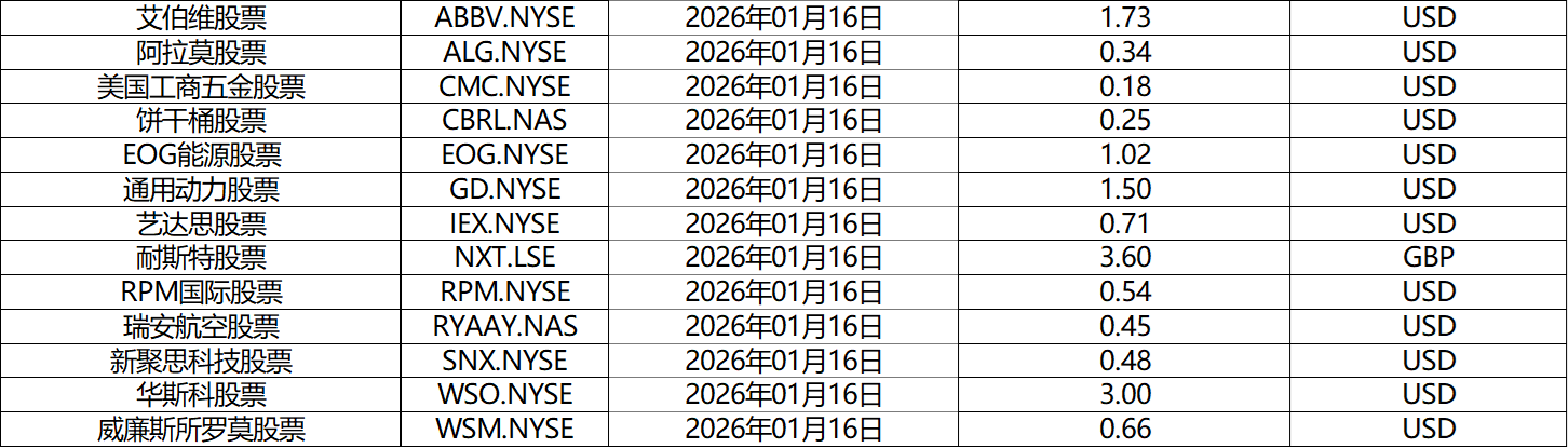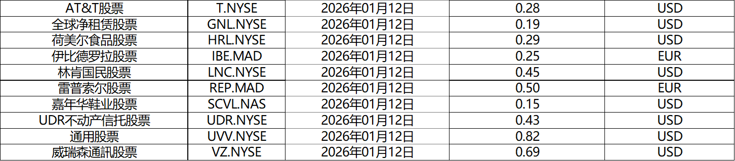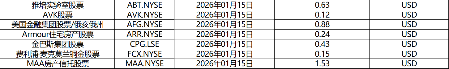 请查阅我们更新的2026年01月股票股息分配表。