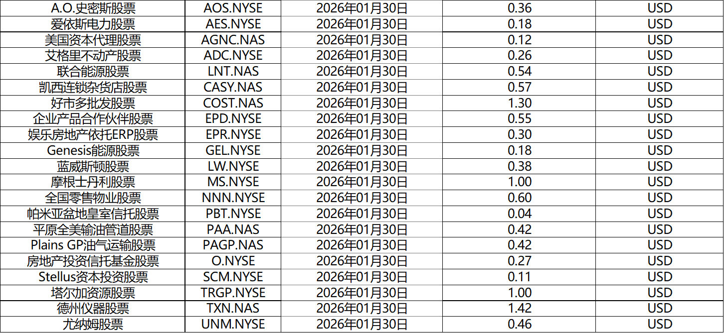 2026年01月股票股息分配表 (2026-01-30)