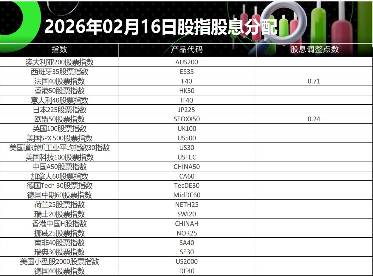 16 Feb 2026 2026年02月股指股息分配表 (2026-02-16) Rachel Yu No Comments 亲爱的客户您好, 请查阅我们更新的2026年02月16日股指股息分配表。 以下所有时间均为平台时间(GMT+2) IC Markets Global 中文团队 中文官网: http://icm-cn-asia.com Email: support.cn@icmarkets-cs.com 微博:@IC小帮手