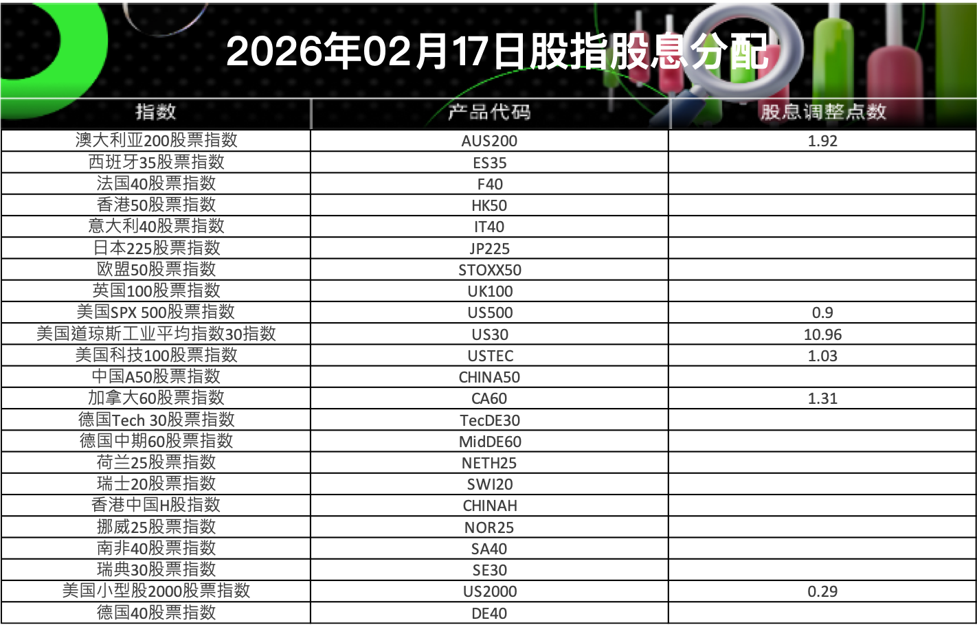 17 Feb 2026 2026年02月股指股息分配表 (2026-02-17) Chloe Lai No Comments 亲爱的客户您好, 请查阅我们更新的2026年02月17日股指股息分配表。 以下所有时间均为平台时间(GMT+2) IC Markets Global 中文团队 中文官网: http://icm-cn-asia.com Email: support.cn@icmarkets-cs.com 微博:@IC小帮手