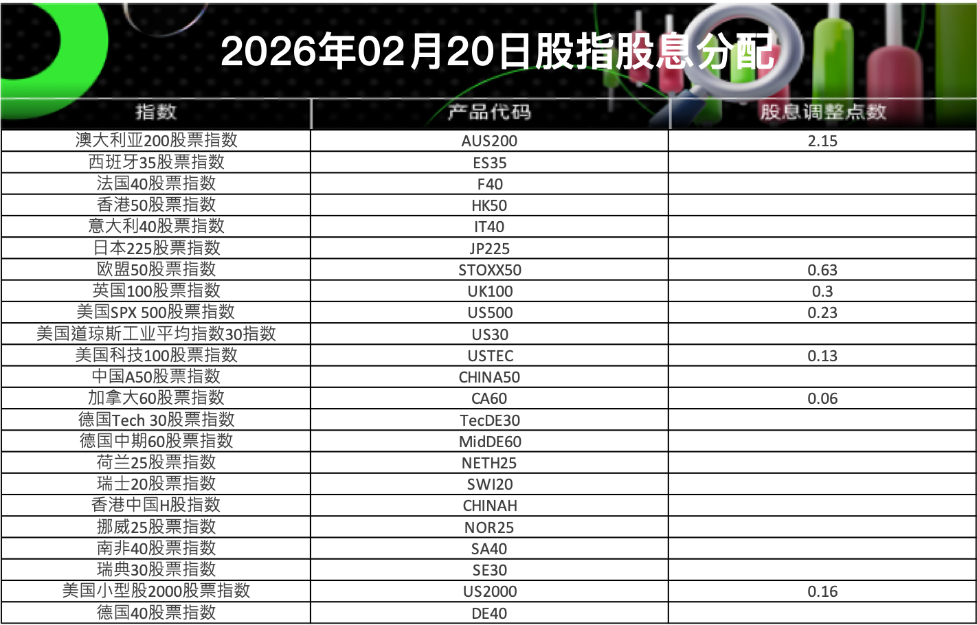 请查阅我们更新的2026年02月20日股指股息分配表。