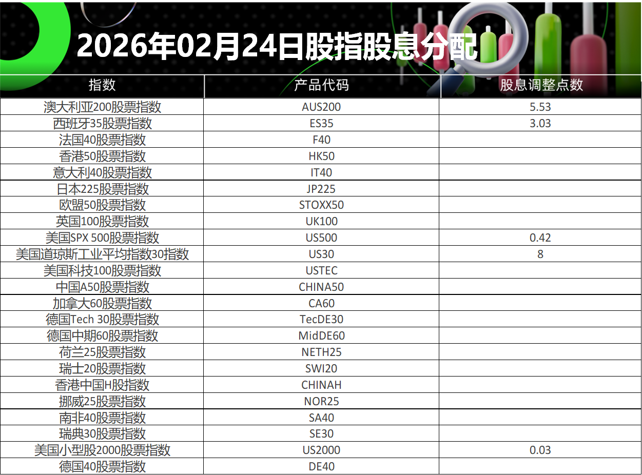 请查阅我们更新的2026年02月24日股指股息分配表。