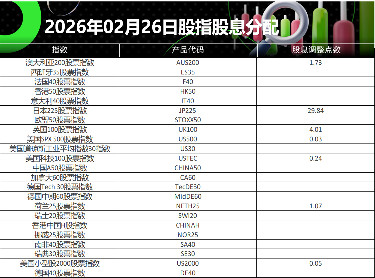 请查阅我们更新的2026年02月26日股指股息分配表。