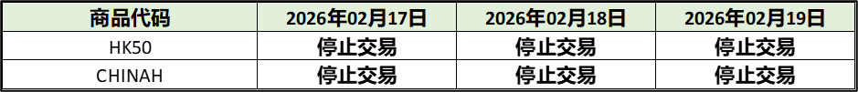 请查看我们更新的2026年02月17日(星期二)- 2026年02月19日(星期四)中国农历新年交易时间表。