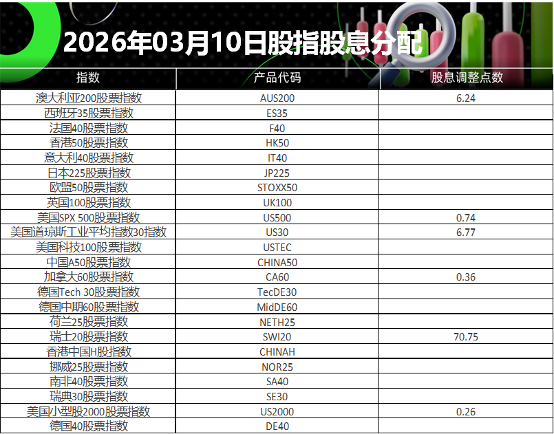 请查阅我们更新的2026年03月10日股指股息分配表。