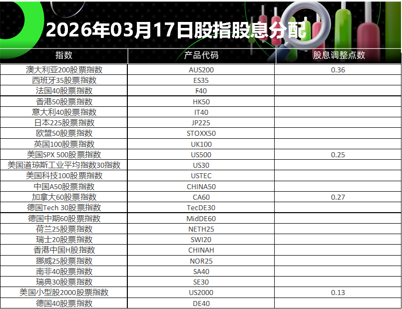 17 Mar 2026 2026年03月股指股息分配表 (2026-03-17) Rachel Yu No Comments 亲爱的客户您好, 请查阅我们更新的2026年03月17日股指股息分配表。 以下所有时间均为平台时间(GMT+3) IC Markets Global 中文团队 中文官网: http://icm-cn-asia.com Email: support.cn@icmarkets-cs.com 微博:@IC小帮手
