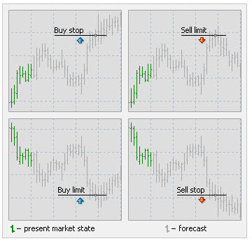 The three main types use in forex are stops, limits and market orders. Depending on whether you want to be a buyer or seller, above or below or at the market price will determine which of the below orders you should be using.