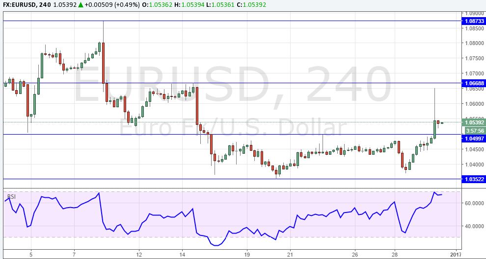 EUR/USD rallied overnight after it broke above 1.05 resistance in the early Asian session and reached a high of 1.0653. However, this happened at a time when liquidity is the lowest, especially now ahead of New Year's Eve. The rally was quickly retraced and EUR/USD is now back at 1.0530.