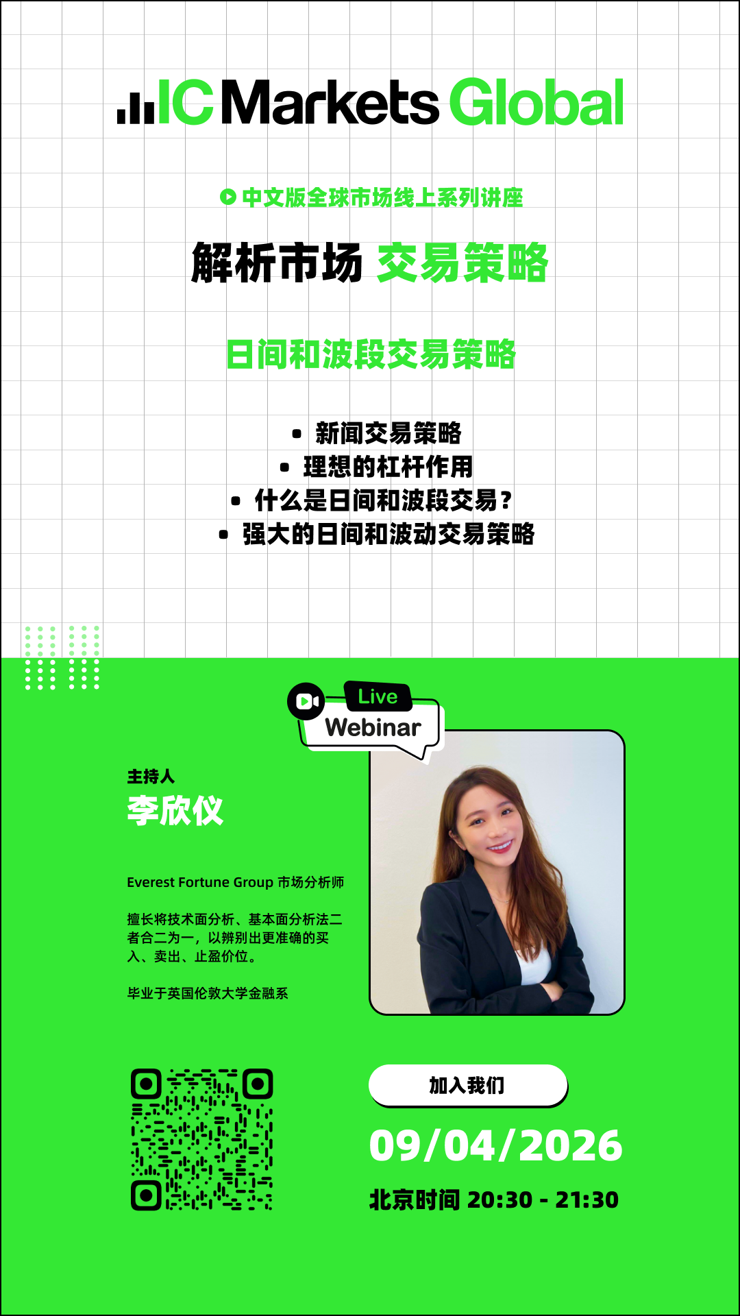 IC Markets Global 04月09日(周四) 线上讲座:日间和波段交易策略