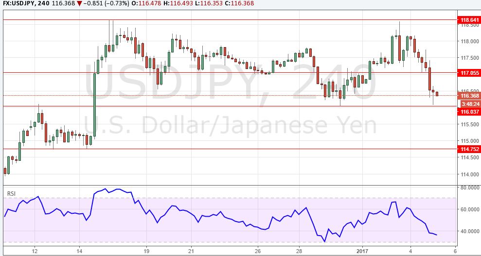 USD/JPY is approaching a significant support area at 116.00-10. A break below would likely trigger plenty of momentum selling and further position covering, and could pave the way for a deeper retracement, towards 113.00 support.