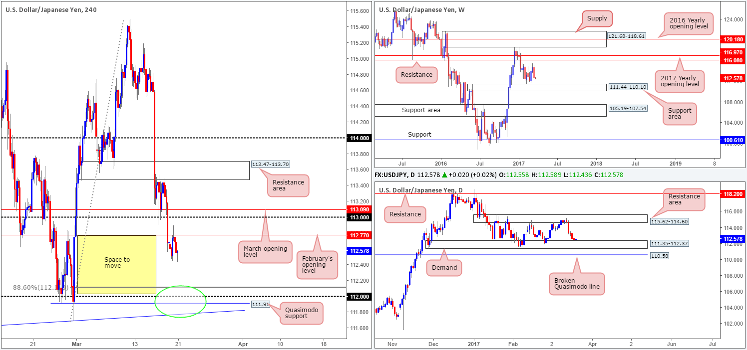 - Buys: 111.75/112.11 ([waiting for a reasonably sized H4 bull candle to form is advised before pulling the trigger] stop loss: ideally beyond the confirming candle).