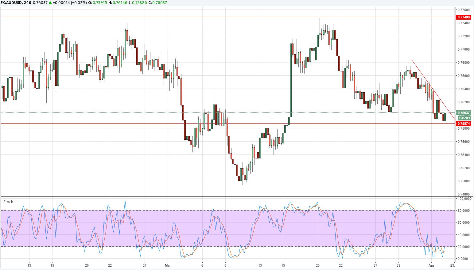 The Aussie is showing resilience. The currency pair bounced off 0.7587 support, and while it is struggling to rally, there is a lack of downside momentum as well. Nevertheless,