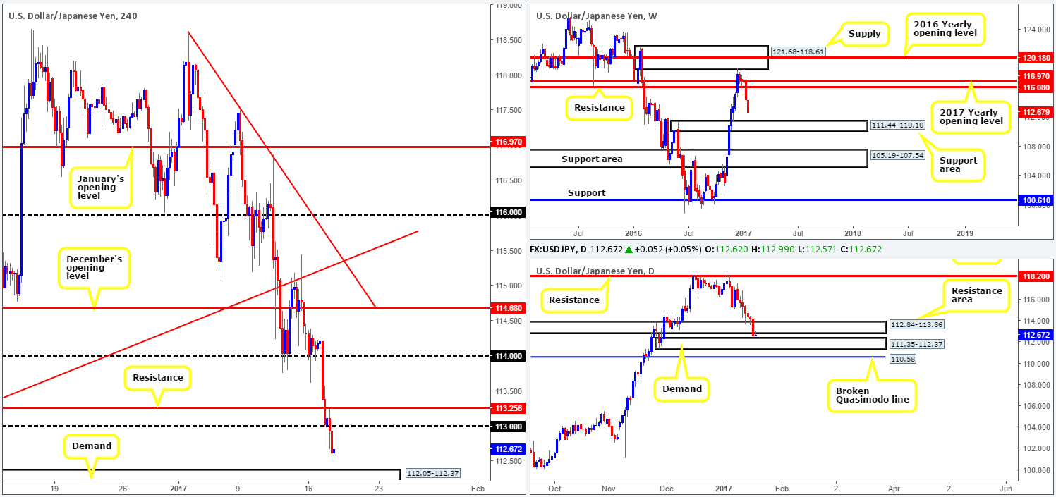 • Buys: 112.05-112.37 ([a H4 bull candle is required here before a trade can be executed] stop loss: ideally beyond the trigger candle).